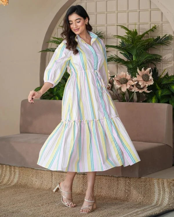 Radiate happiness in this colourful cotton dress, a playful fusion of hues that captures the spirit of fun and freedom.